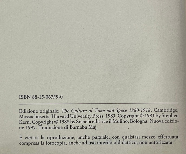 Stephen Kern - Il tempo e lo spazio (il Mulino, 1995)
